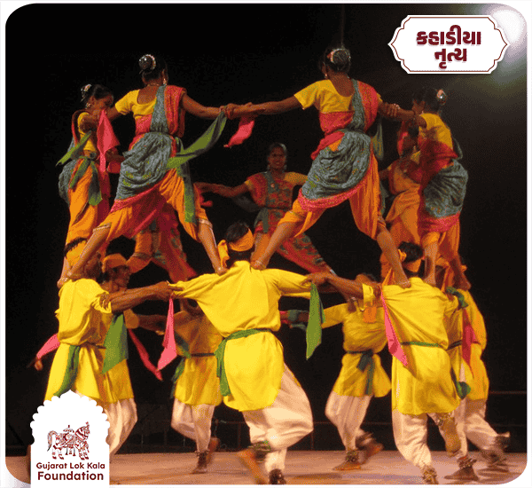 Kahadiya Nritya is a unique and visually stunning tribal folk dance from the Kunbi community of Dang district in South Gujarat. The dance derives its name from the “Kahadi”, a special type of bamboo flute used during the performance. Combining tradition, agility, and rhythm, Kahadiya Nritya stands out for its pyramid formations, rich costumes, and celebratory nature.